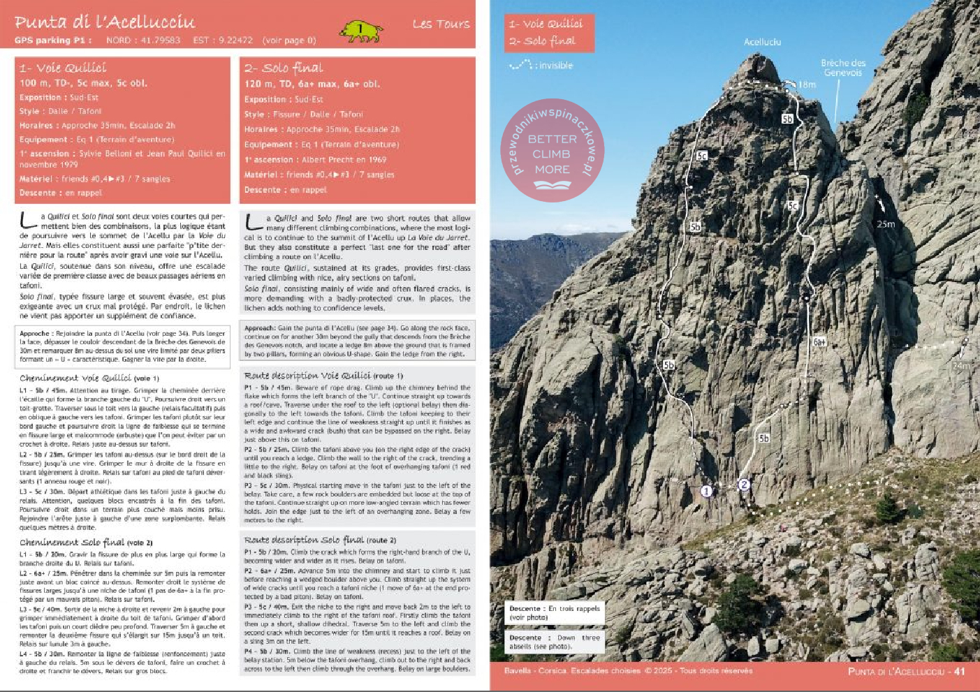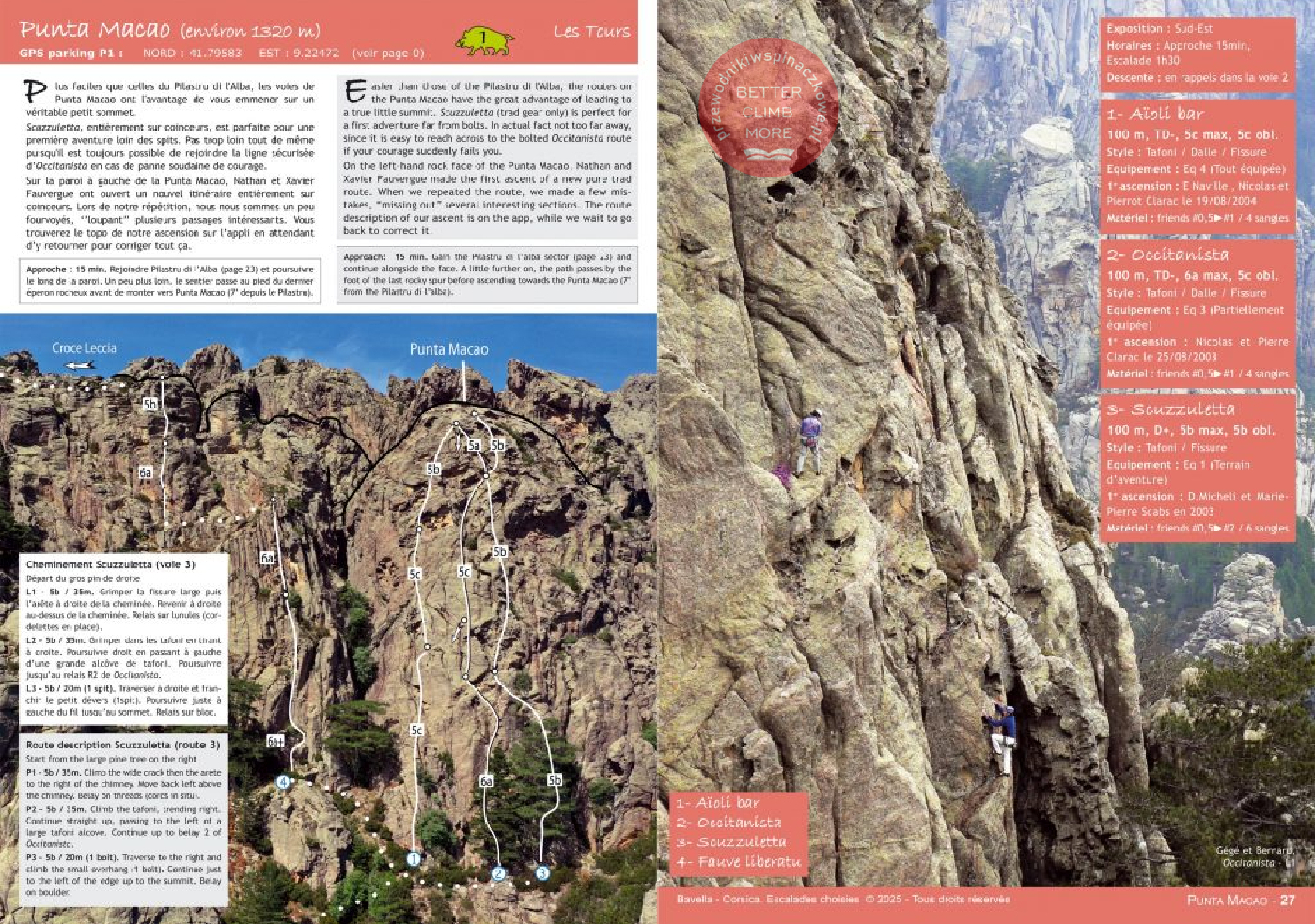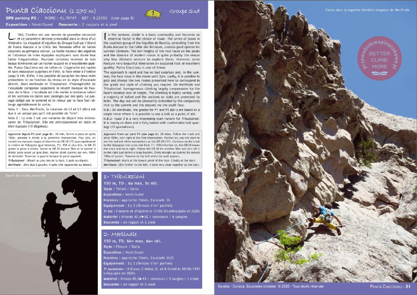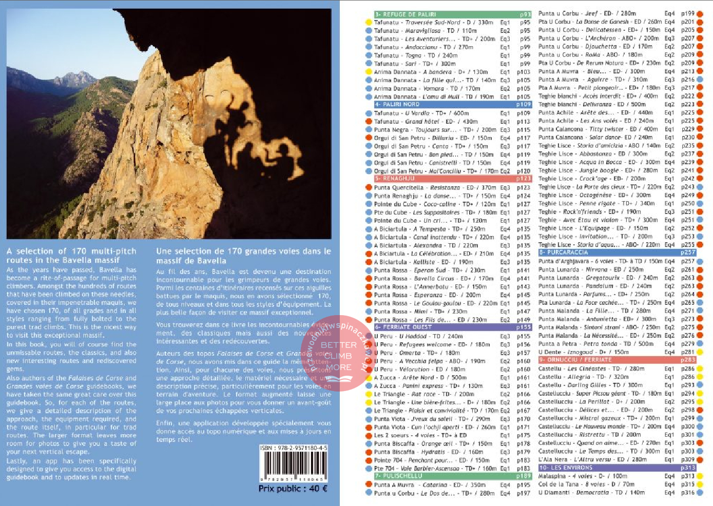 Liczne anegdoty, prezentacje osób z korsykańskiej sceny wspinaczkowej oraz informacje historyczne sprawiają, że przewodnik Bavella Corsica jest czym więcej niż zwykłym topo wspinaczkowym.