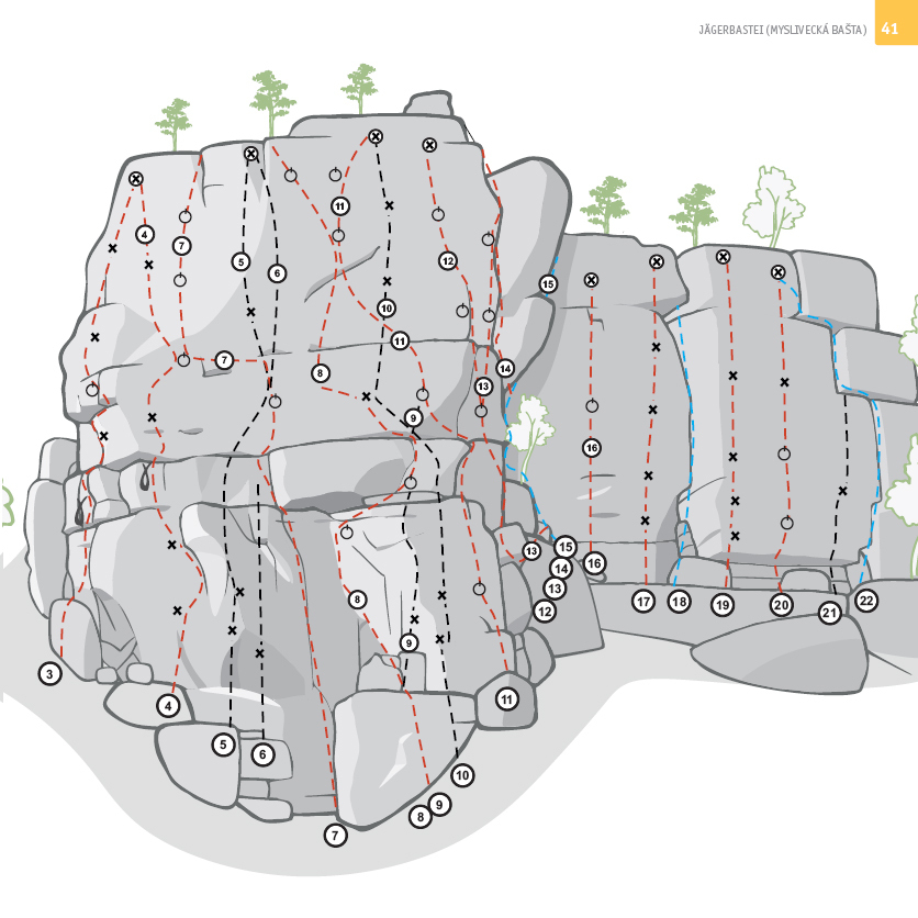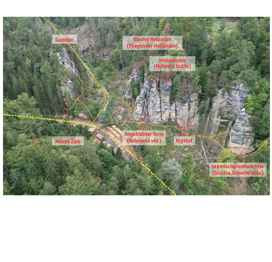 Dolina Łaby to rejon słynący z niezwykle wytrzymałego i twardego piaskowca - wspinając się tu doświadcza się rzeczywiście litej skały. Strome ściany kanionu Łaby od strony Czech przechodzą w monumentalne ściany osiągające do 80 metrów wysokości. Piękno piaskowców budujących skały tego rejonu można dostrzec jeszcze przed podejściem w skały z miejscowości Dolní Žleb (niem. Niedergrund), a na górze malownicze krajobrazy są doskonałym uzupełnieniem świetnej jakości wspinania.