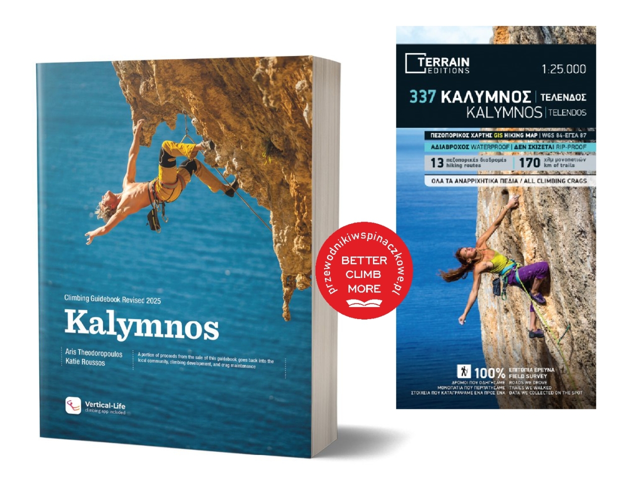 Kalymnos Kalymnos mapa + przewodnik wspinaczkowy to zestaw najnowszego przewodnika wspinaczkowego (2024 r.) po greckiej wyspie Kalymnos stworzonego przez lokalnych wspinaczy wraz z mapą trekkingowo-wspinaczkową obejmującą rejony opisane w przewodniku.