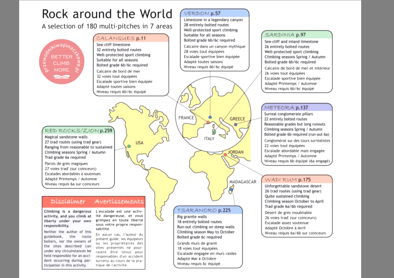 Przewodnik wspinaczkowy Rock around the world to wybór najciekawszych dróg wielowyciągowych w 7 popularnych miejscach wspinaczkowych na świecie.
