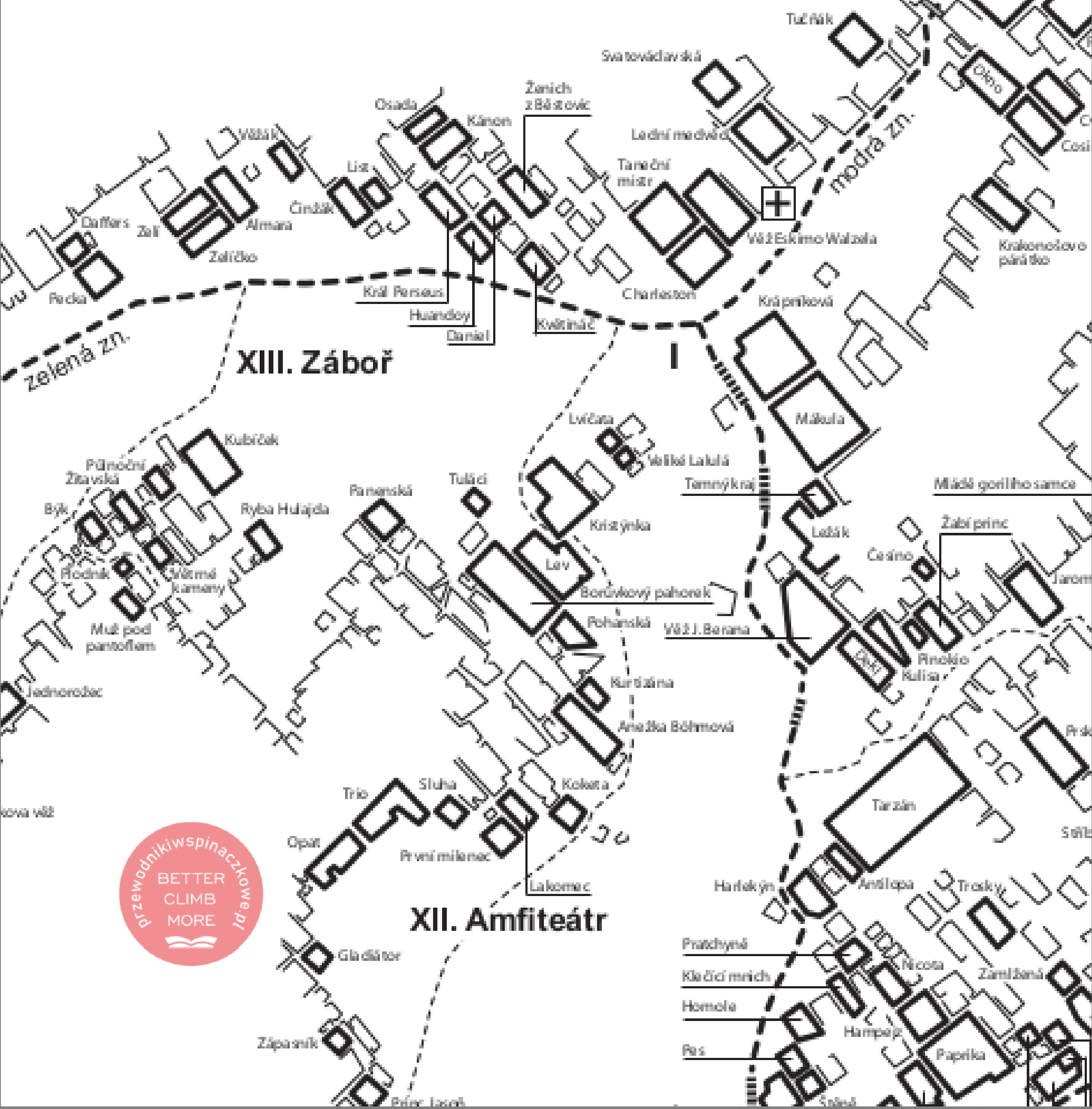 Obejmuje wszystkie wieże opisane w pierwszej części przewodnika po Teplicach. Na planie zaznaczono ścieżki dojścia do poszczególnych rejoników, wyszukiwanie konkretnych skałek ułatwia alfabetyczny indeks.